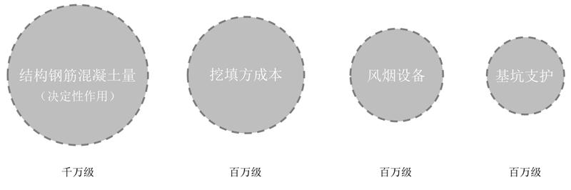 結(jié)論2:造價組成,相比于傳統(tǒng)車庫,專利車庫大大降低了鋼筋混凝土、挖填方、風(fēng)煙設(shè)備等成本,省投資。